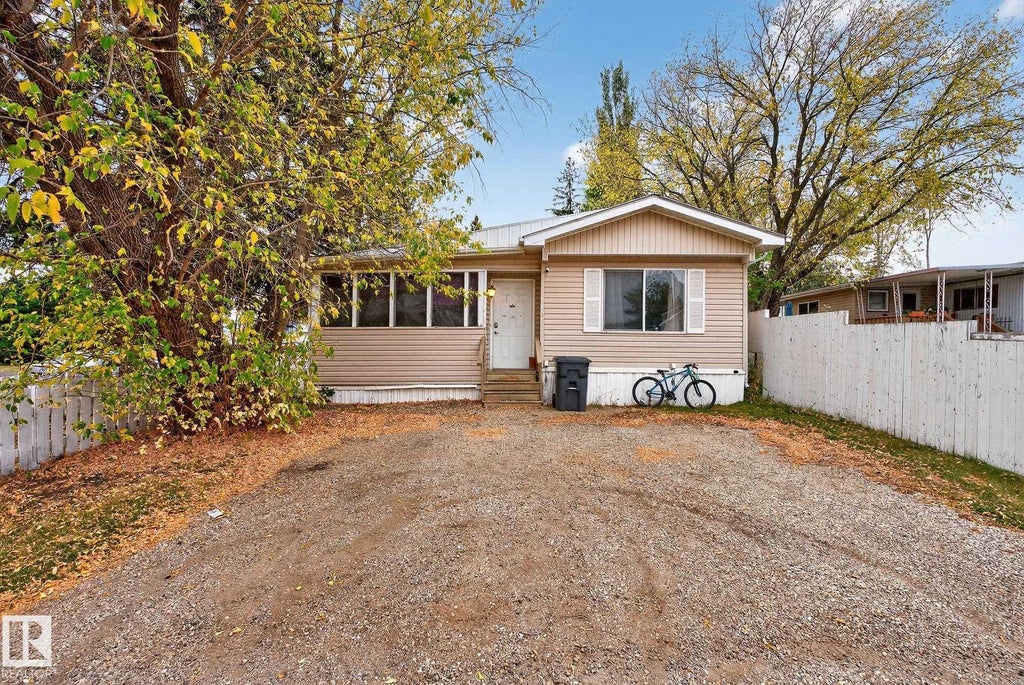Just under 1600 sq.ft of opportunity awaits in Mobile City Estates, Spruce Grove. Complete with three bedrooms, one bathroom and a spacious addition utilized as storage or a future hobby room this property is eager to welcome its new owners and ready for a refresh! The fully fenced corner lot offers enough space for pets or children to play, while the mature trees add character and privacy. In the back, a 12’ x 16’ shed comes with the property which is perfect to store all the tools and toys or become an extension of the home to be utilized as a workshop! The home offers an updated bathroom, newer furnace, a tin roof and an updated fridge and stove relieving some of the expenses to update the interior! Enjoy convenient access to local schools, grocery stores, retail shops and local transit just a short walk away! Bring this home back to its full potential with some TLC, and enjoy all Spruce Grove has to offer!