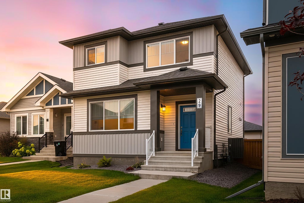 TRIPLE HEATED GARAGE with back lane access! Located in the family friendly community of Harvest Ridge awaits a meticulously taken care of 2-storey with the sought after fully finished triple garage in Spruce Grove. This RARE home feat. an open concept design with 3 beds, 2.5 bath with over 1,500sqft of living space above grade, a sleek white kitchen with upgraded countertops, stainless steel appliances w/ induction stove, durable vinyl plank flooring, 9ft main floor ceilings, solar panels on the home & garage, water softener system, HRV unit and so much more! Upstairs boasts 3 generous bedrooms feat the primary suite with walk-in closet, MDF shelving, 3 pce ensuite and the basement is ready for you to develop how you see fit! Location is ideal for the active family being steps away from walking trials, schools, fields to play in, the Tri Leisure Center, MAJOR amenities and easy access to commuter roads. This one is sure to TOP Your list!