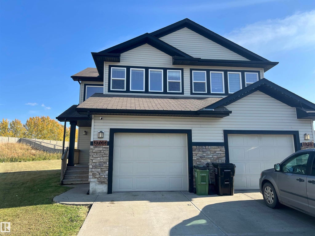 Discover this 3-bedroom home tucked away in a quiet Tamarack cul-de-sac, perfectly situated on a rare pie-shaped lot that offers unparalleled privacy with no rear neighbours. From the moment you arrive, you’ll appreciate the large fully landscaped yard. The expansive backyard is a dream ideal for gardening, play, or hosting gatherings. Inside, the main floor welcomes you with a bright, open-concept layout featuring a stylish kitchen, spacious dining area, and a cozy living room with a gas fireplace—perfect for relaxing or entertaining. A convenient half bath completes the main level. Upstairs, you'll find a large bonus room ideal for family movie nights or a home office, a primary suite with a 4-piece ensuite, plus two additional well-sized bedrooms and a 4-piece main bath. Generous windows throughout flood the home with natural light. Whether you're a growing family or savvy investor, this rare offering combines location, lot size, and layout for exceptional value.